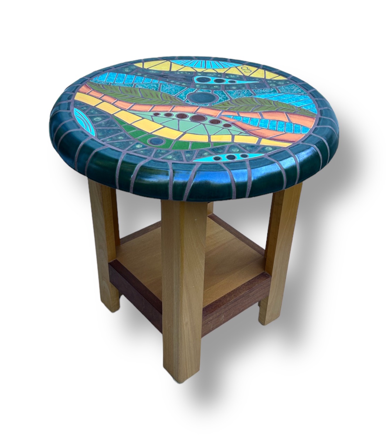 and as a vibrantly custom designed, tiled table. I make individual, highly textured