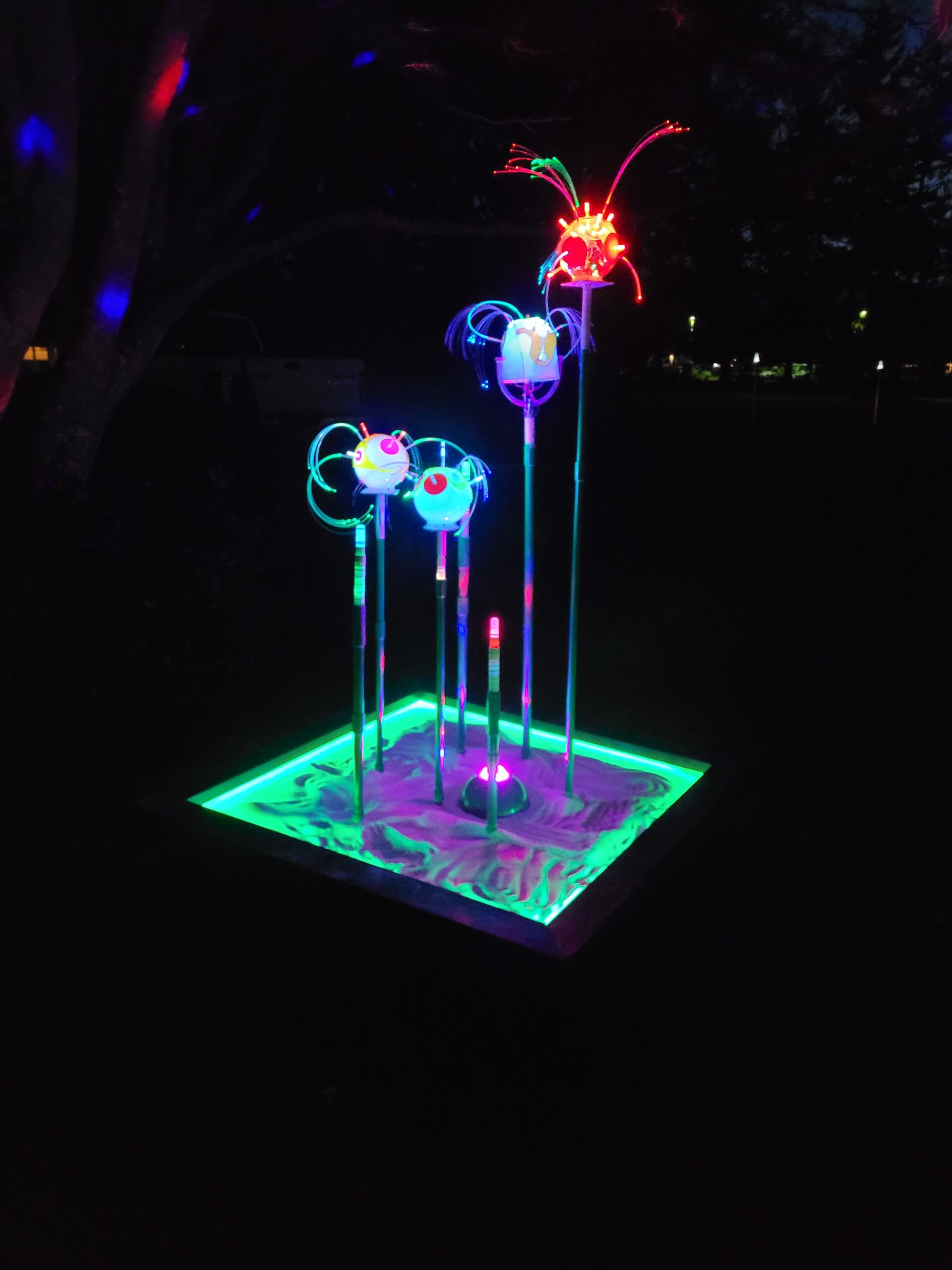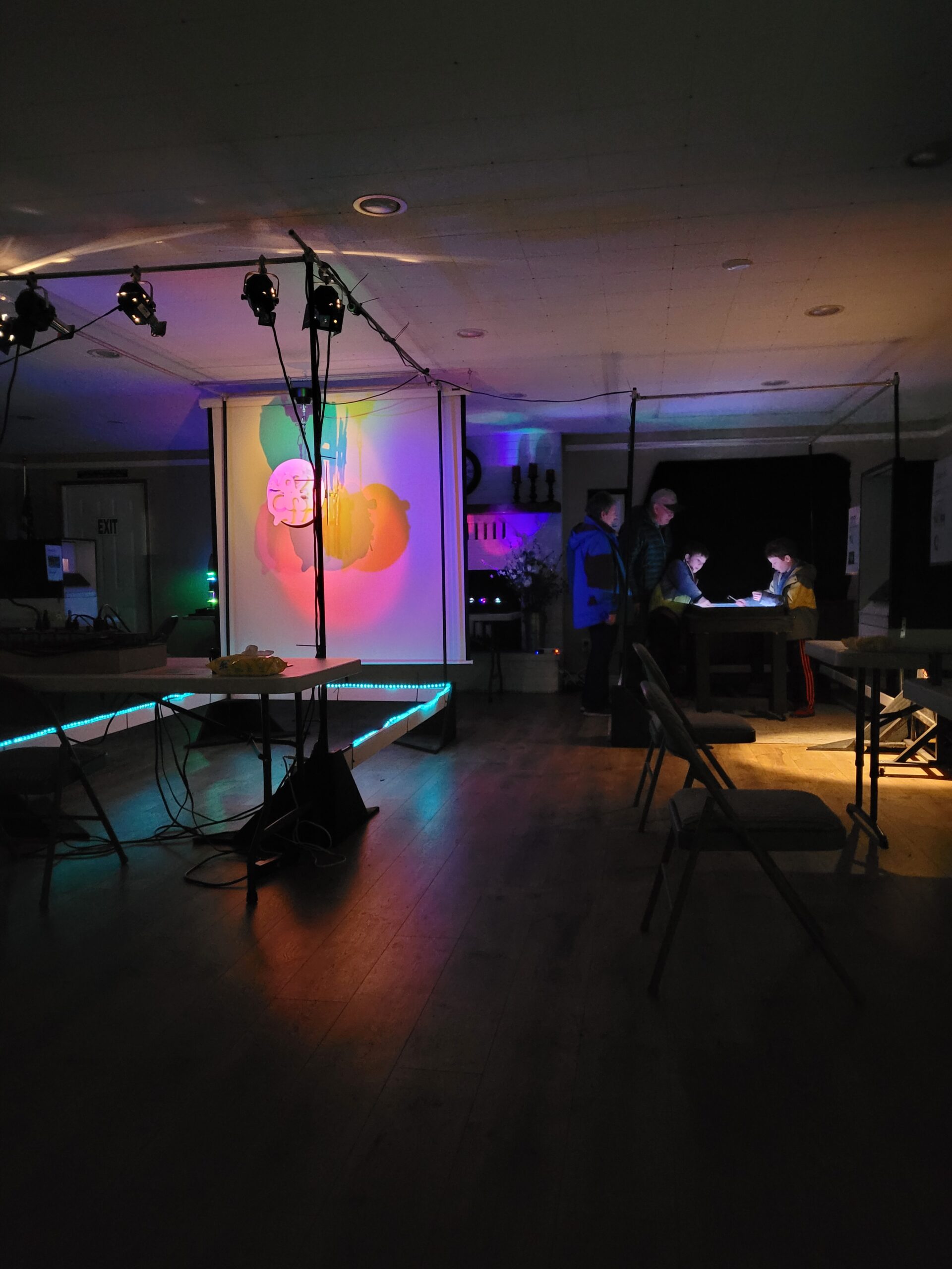 Ross Brown is a light artist who has been creating amazing shows for the Sequim Sunshine Festival since 2020. His latest work is an interactive light experience that lets you explore the art and science of light in a darkened room. You can see some pictures of the latest show below.