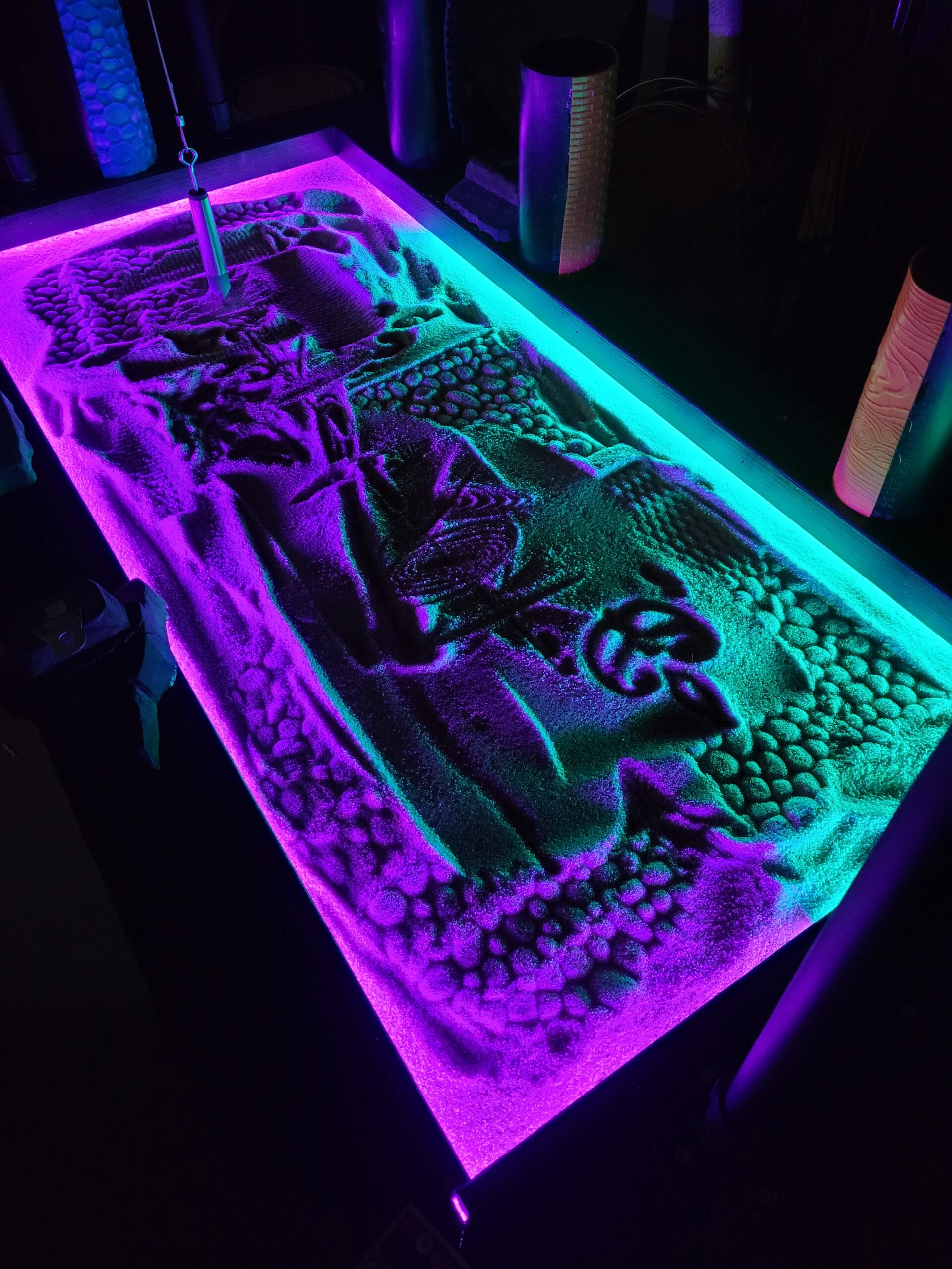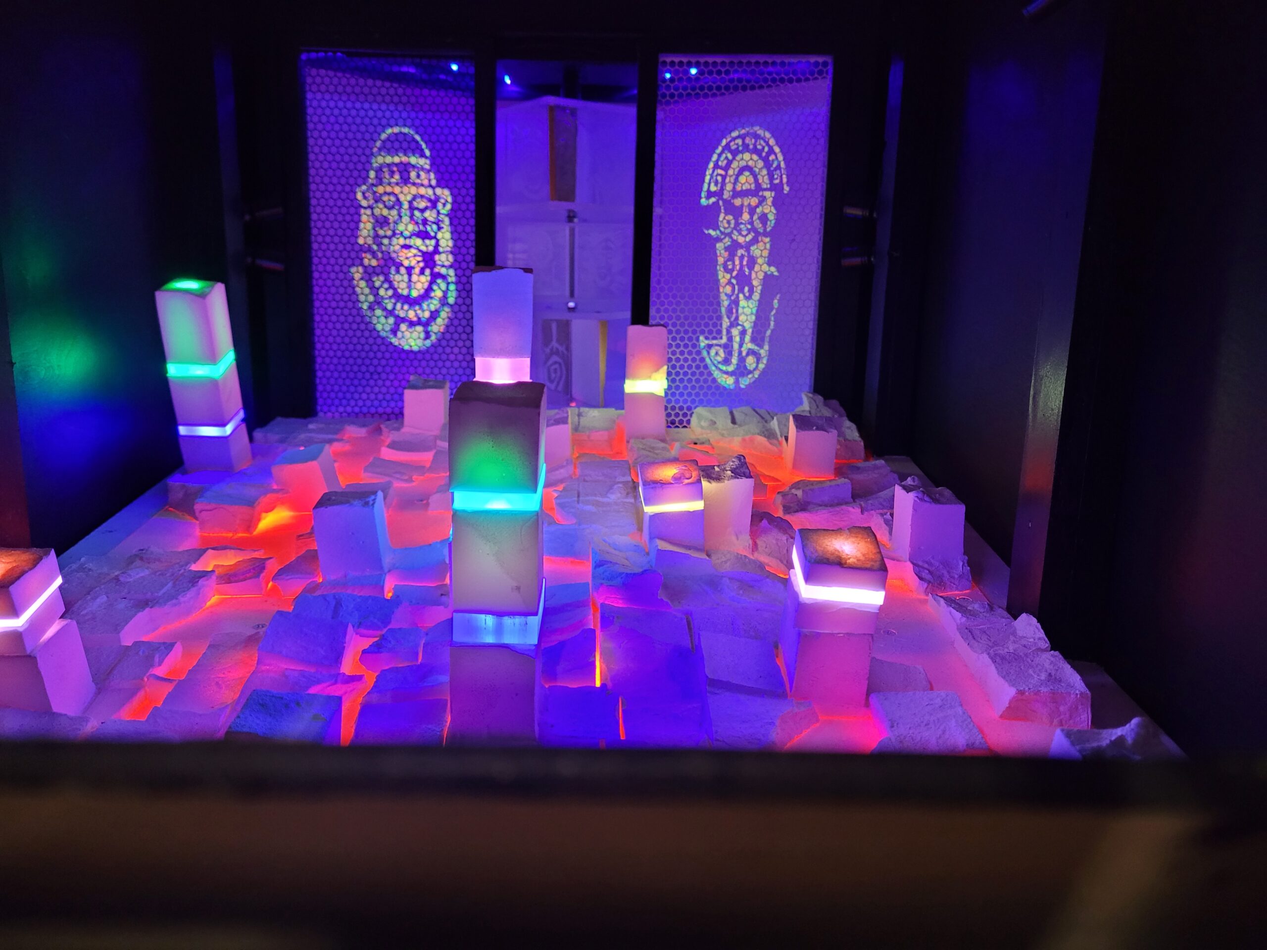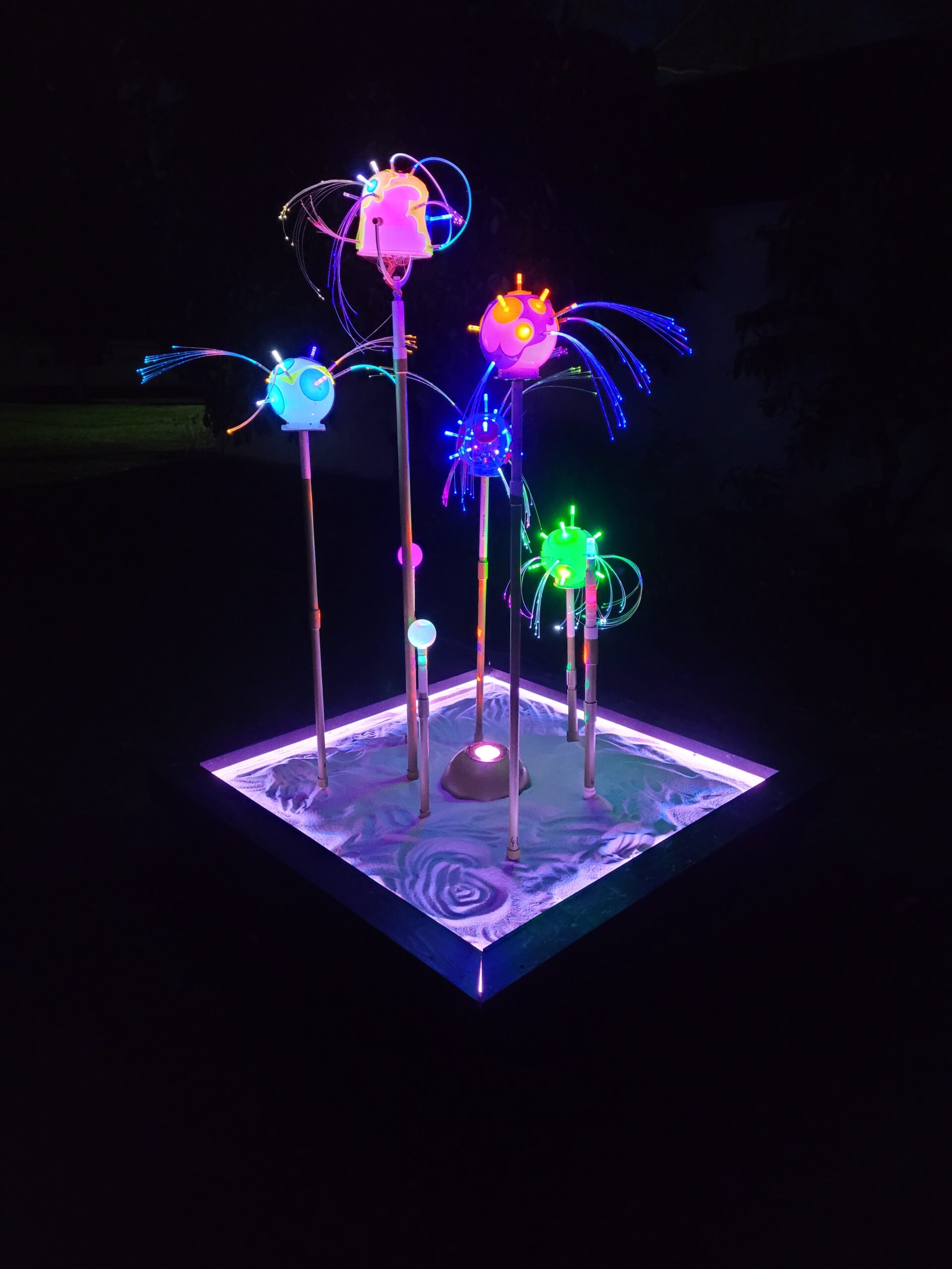 The colorful sandbox (below) is one of the interactive light pieces that the kids love. It uses LED strip lighting that changes color with the sand height. You can make your own landscapes and see the colors change as you shape the sand.
